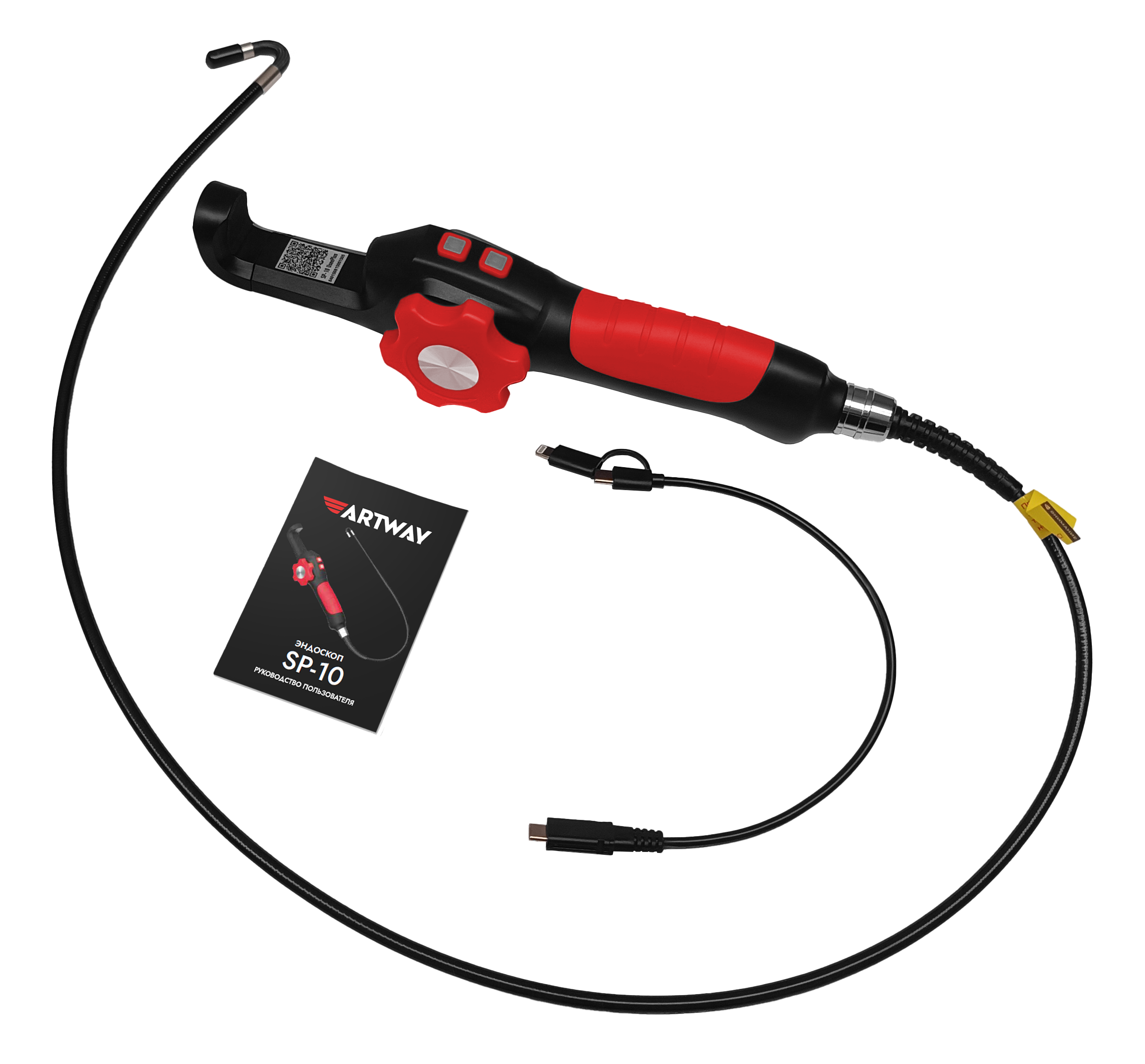 Эндоскоп — 1 шт. Кабель подключения Type-C — 1 шт. Переходник Type-C/Lightning — 1 шт. Инструкция — 1 шт. Гарантийный талон — 1 шт. |