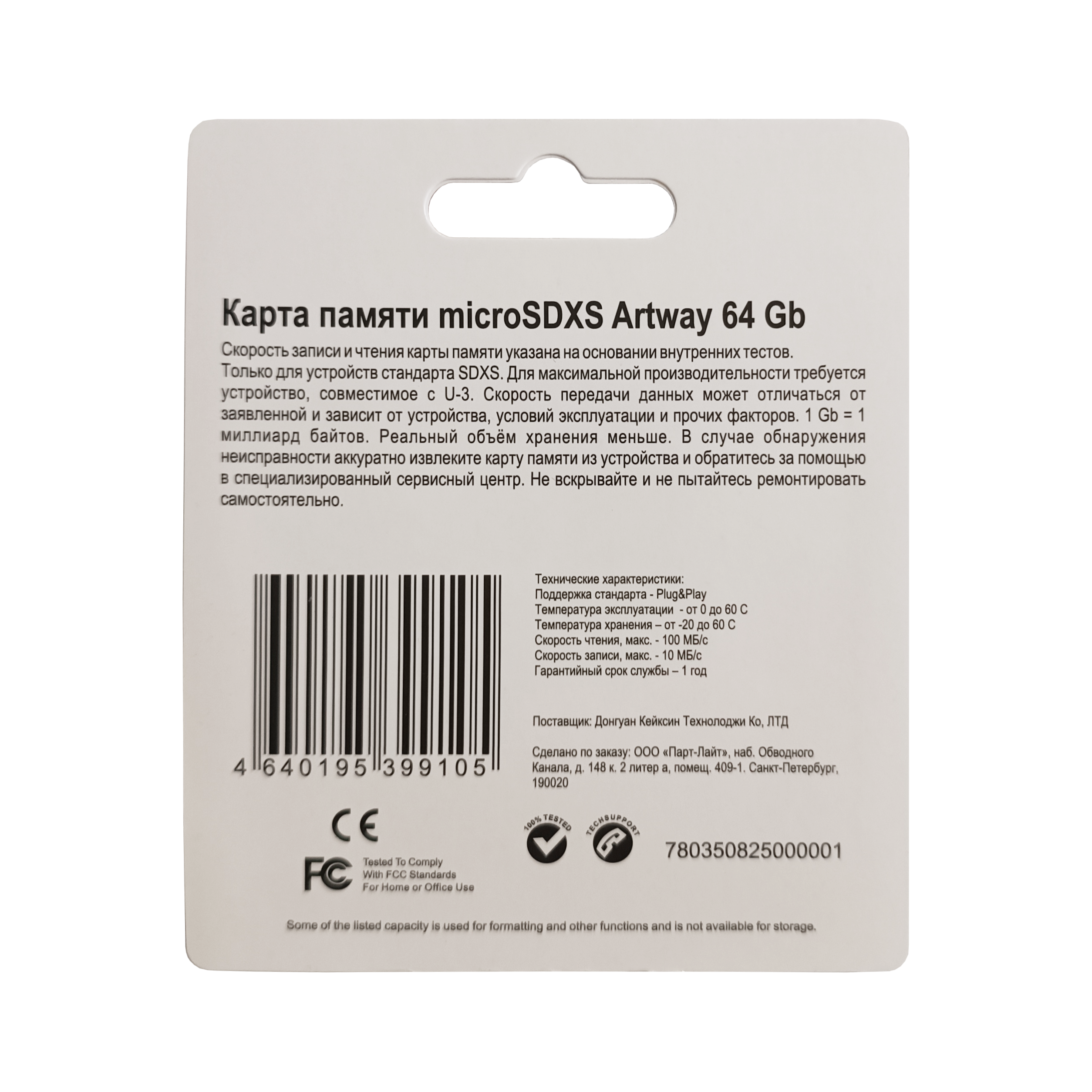 Карта памяти micro SD — 1 шт. Переходник SD — 1 шт. |